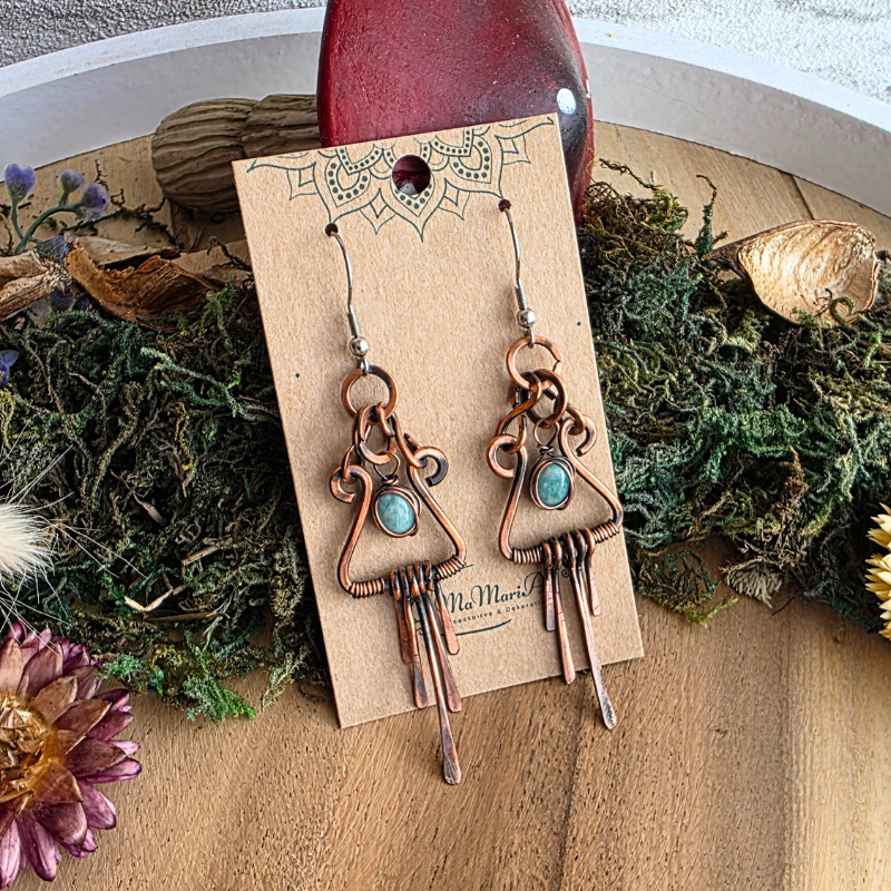 Ohrringe Waldgeflüster | Amazonit & Kupfer in mystischem Design
