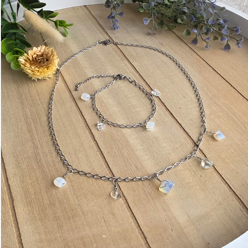 Opalith Edelstahl Halskette & Armband | Einzeln oder Set